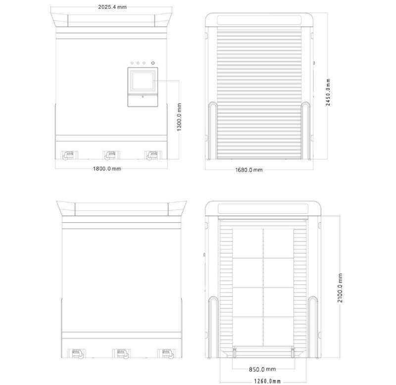 外部尺寸1800(長) x 1680 (寬)x 2450 (高)mm